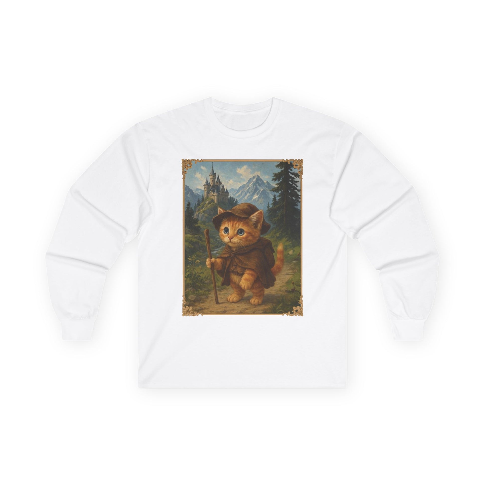 Adventurous Kitten Long Sleeve T-shirt - Fantasy Explorer Cat Shirt, Unisex Cotton Tee