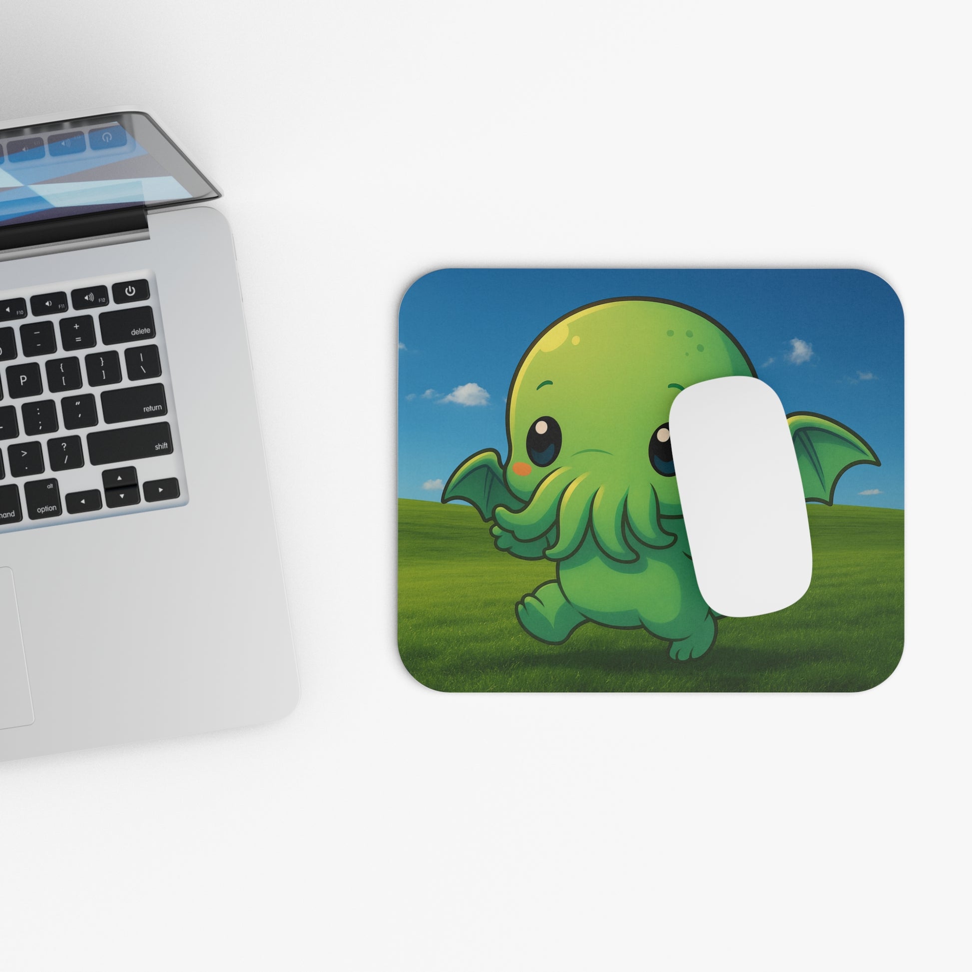 ☀️ Brighten up your workspace with a dash of cosmic cuteness! This mouse pad features an adorable chibi Cthulhu soaring over a sunny, rolling landscape—equal parts whimsical and eldritch. Whether you’re working, gaming, or just vibing at your desk, this mouse pad adds a playful, otherworldly charm while keeping things practical and comfy.