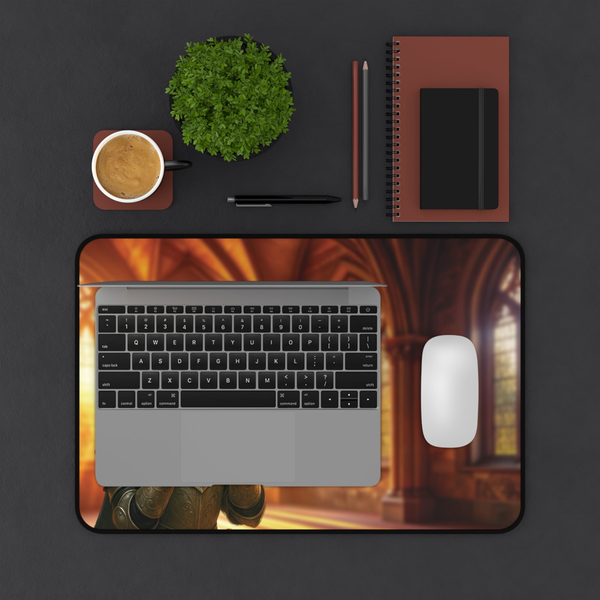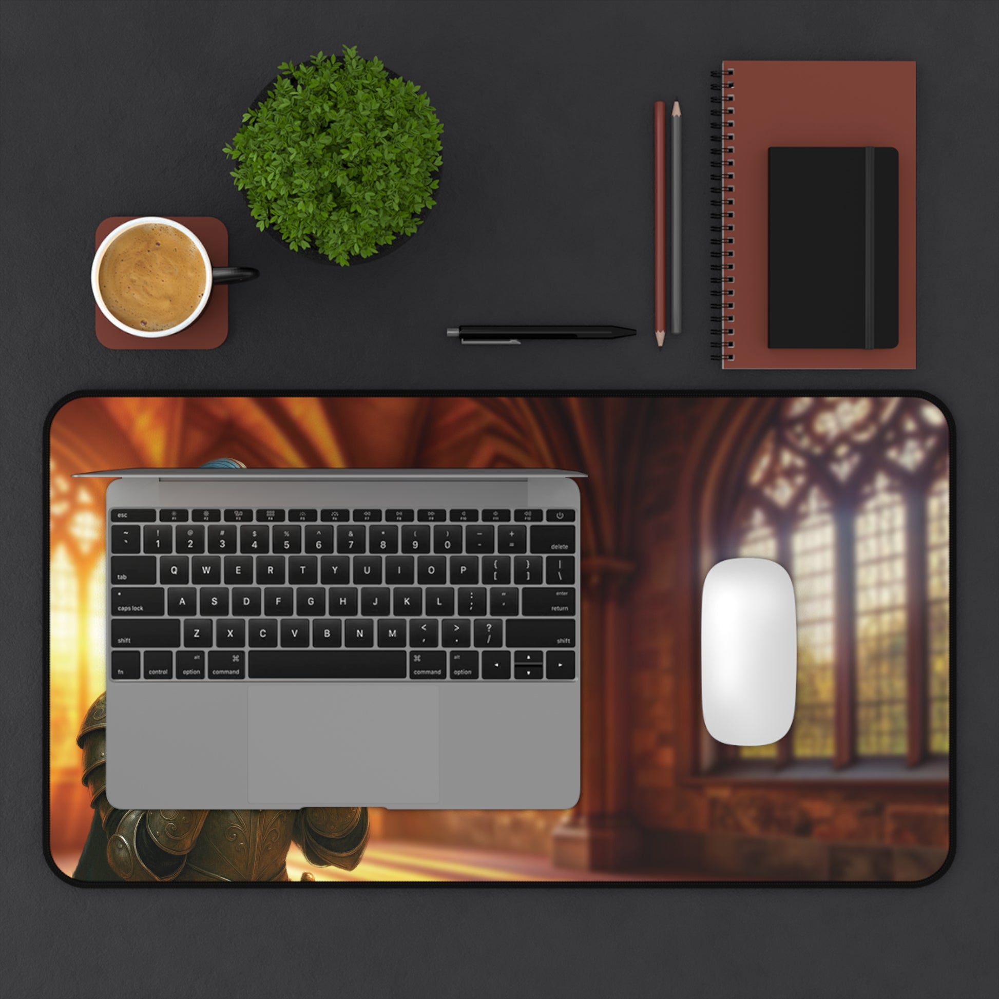 🥪 Bring a touch of medieval mischief to your workspace with this noble (yet undeniably adorable) desk mat! Featuring a gallant armored cat standing proudly in a sunlit cathedral, this mat transforms your everyday desk into a whimsical fantasy realm. Perfect for gamers, writers, artists, or anyone who believes their coffee mug deserves a place on something epic, this desk mat combines practicality with a dash of playful charm.